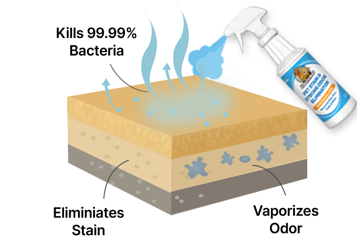 That's exactly what Furry Freshness was made for. Most sprays only work on fresh messes. Ours reaches deep into carpet padding and subfloors, dissolving the real source of odor and stain... even YEARS later.